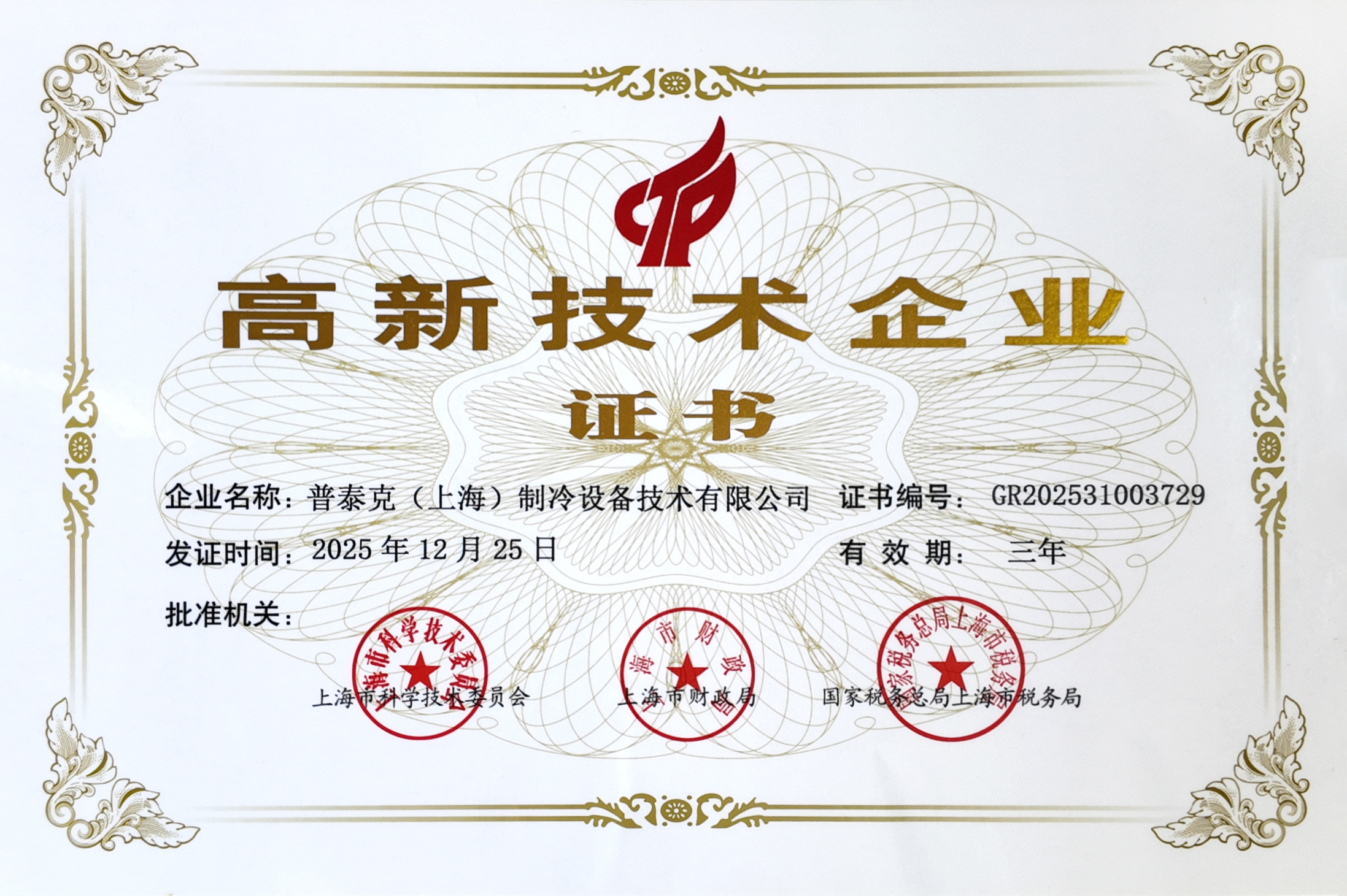 近日,普泰克(上海)制冷设备技术有限公司(以下简称“普泰克”)迎来企业发展的重要里程碑——公司成功通过国家高新技术企业认定,正式迈入国家高新技术企业行列。这一殊荣的获得,是对普泰克在制冷设备领域技术创新、研发实力及科技成果转化能力的高度认可,也是公司发展历程中的又一重要突破。
